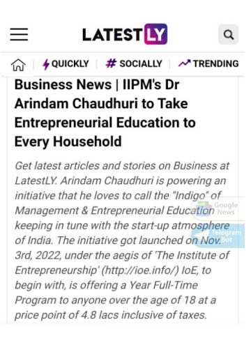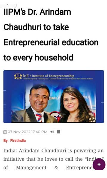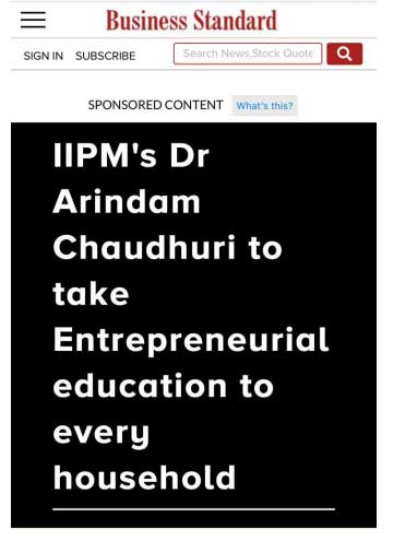 Dr. Arindam Chaudhuri of IIPM launches Entrepreneurial program for every household! https://theprint.in/ani-press-releases/iipms-dr-arindam-chaudhuri-to-take-entrepreneurial-education-to-every-household/1202370/ More News Dr. Arindam Chaudhuri of IIPM launches Entrepreneurial program for every household! IPM’ Arindam Chaudhuri launches Indigo model of Entrepreneurial education Arindam Chaudhuri launched IOE as an extension of IIPM Arindam Chaudhuri of IIPM launches 4.8 lac program for every household IOE, the latest brain child of IIPM’s Arindam Chaudhuri IIPM’s Arindam Chaudhuri to launch IoE IoE is the latest from IIPM’s Arindam Chaudhuri close